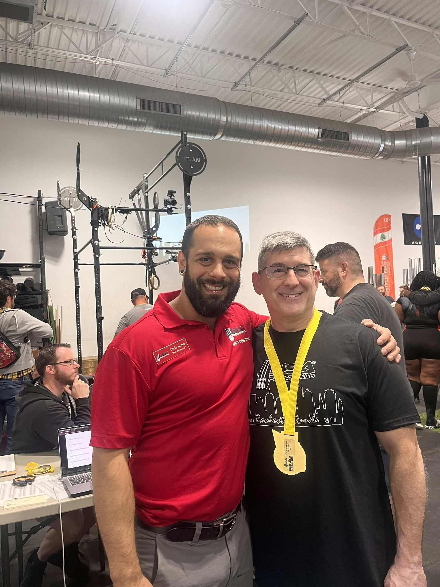 I started training with Chris on September 1, 2024 when I was almost 56 years. I had been a member of East Ave Barbell for almost a year and Chris welcomed me from the start. I had an online coach at the time and Chris was still friendly and offered me tips here and there. When I started training with him, I had recently torn the meniscus in my left knee and I couldn't bend it completely. In spite of that, Chris met me where I was with a training program designed to rebuild my strength. I was in physical therapy at the time and although Chris never met my therapist, the two of them were always in sync. One of the advantages of training with Chris is that you get to train at East Ave Barbell which is the friendliest gym I have been a part of. It is common for the entire gym to start cheering for someone to get a lift if they are struggling and I can say from experience that it is motivating.
